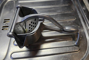 Bought it for making fresh dressings and marinades; the leverage makes pressing effortless and the brushed finish hides scratches well.
